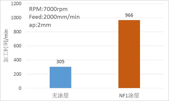 刀具使用NF1涂層后切削測試效果對比圖: