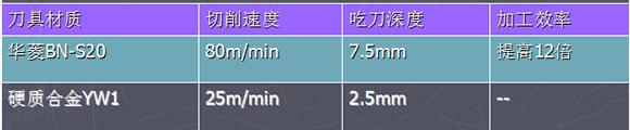 加工效果:華菱超硬CBN刀具BN-S20牌號(hào)與硬質(zhì)合金刀具YW1對(duì)比,在華菱超硬CBN刀具BN-S20的切削速度是硬質(zhì)合金刀具YW1的兩倍,吃刀深度是硬質(zhì)合金刀具的兩倍的情況下,華菱超硬CBN刀具BN-S20牌號(hào)的加工效率提高了12倍,即提高了加工效率,又降低了刀具費(fèi)用和加工成本。