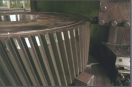大型齒輪(齒圈)滲碳淬火后變形嚴(yán)重,齒輪外圓變形量高達(dá)2mm,淬火后的硬度為HRC60-HRC65。