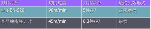 (2)以華菱超硬CBN刀具BN-S20牌號(hào)粗加工齒輪鋼為例(如下圖):